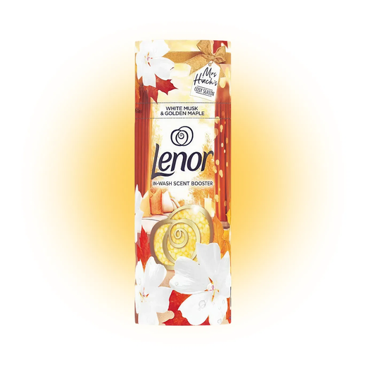 Парфумовані гранули для білизни Lenor White Musk & Golden Maple, 155 г - це ваш секрет тривалої свіжості та вишуканого аромату, який надійно "замикає" запах у волокнах тканини, даруючи вашим речам до 12 тижнів насиченої пахощі під час зберігання. Пориньте у вишукану гармонію, де ніжні ноти білого мускусу розкриваються на вашому одязі, елегантно переплітаючись із теплими, трохи солодкими деревними акордами золотого клена. Ця композиція гранул Lenor створює відчуття чистоти, затишку та стриманої розкоші.